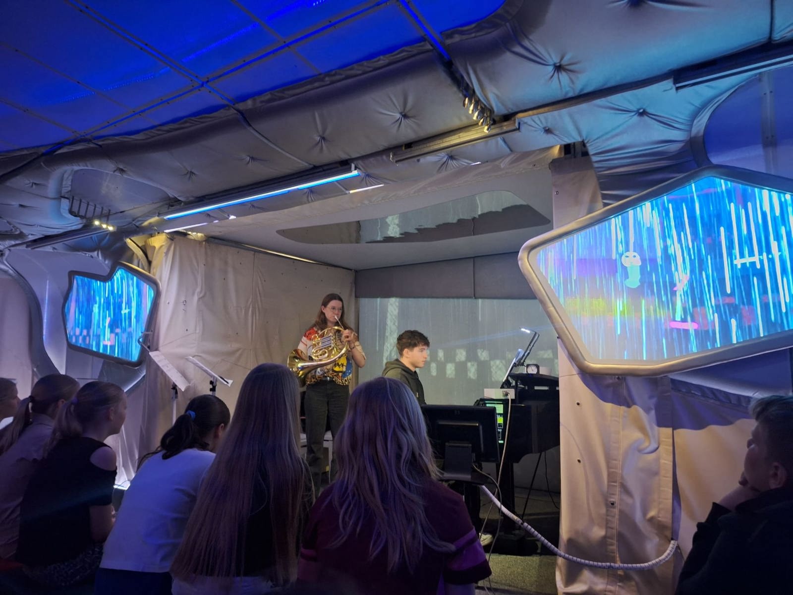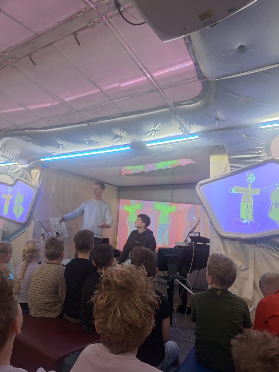 Zodra de kinderen de indrukwekkende trailer binnenstapten, opende zich een wereld vol muziek, prachtig licht en verwondering. In een intieme setting maakten ze kennis met de magie van klassieke muziek, gespeeld door de talenten van het Prinses Christina Concours. Het was prachtig om te zien hoe de muzikanten de kinderen wisten te raken en te inspireren met hun passie en vakmanschap.